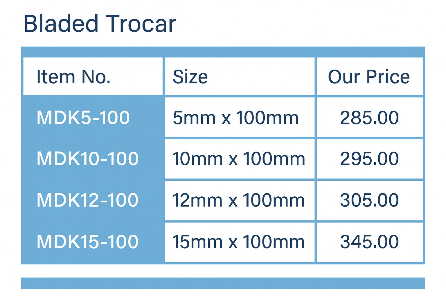 Store the trocar in a clean, dry place with controlled temperature. Keep it away from humidity, dust, or direct sunlight, as these can compromise the mechanical integrity and packaging seal of the device.